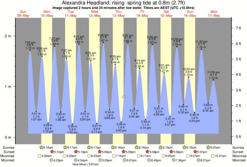 Image captured 2 hours and 34 minutes after low water (rising spring tide). Tide height was 0.8m (2.7 ft). Range 2.08m (6.8 ft). Toggle tide graph
