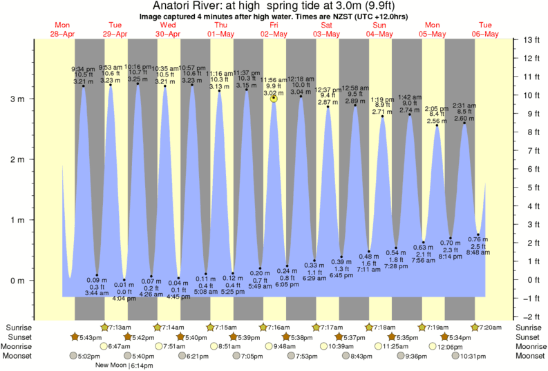 Image captured 4 minutes after high water (at high spring tide). Tide height was 3.0m (9.9 ft). Range 3.87m (12.7 ft). Toggle tide graph