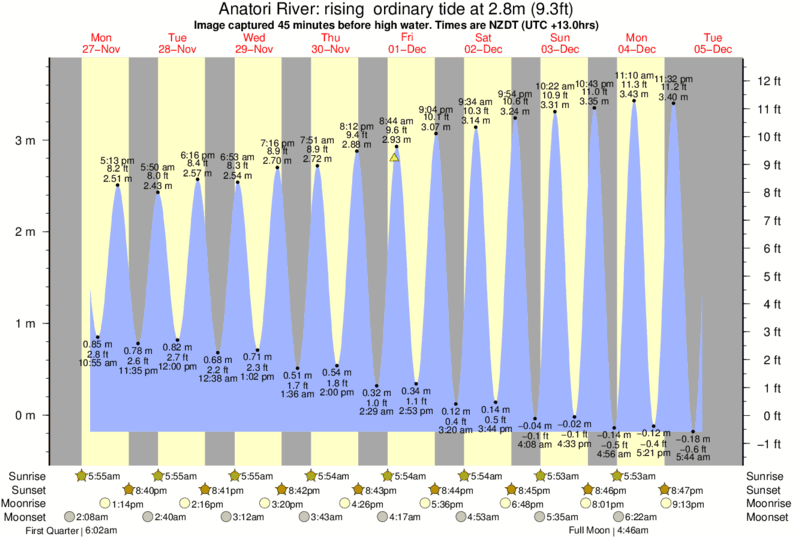 Image captured 45 minutes before high water (rising spring tide). Tide height was 2.8m (9.3 ft). Range 3.70m (12.1 ft). Toggle tide graph