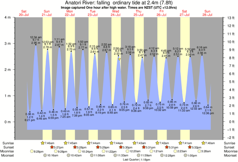 Image captured One hour after high water (falling ordinary tide). Tide height was 2.4m (7.8 ft). Range 3.91m (12.8 ft). Toggle tide graph