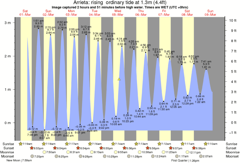 Image captured 2 hours and 51 minutes before high water (rising ordinary tide). Tide height was 1.3m (4.4 ft). Range 3.09m (10.1 ft). Toggle tide graph