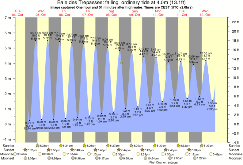 Image captured One hour and 51 minutes after high water (falling ordinary tide). Tide height was 4.0m (13.1 ft). Range 6.86m (22.5 ft). Toggle tide graph