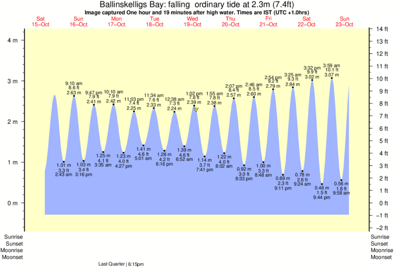 Image captured One hour and 19 minutes after high water (falling ordinary tide). Tide height was 2.3m (7.4 ft). Range 4.16m (13.6 ft). Toggle tide graph