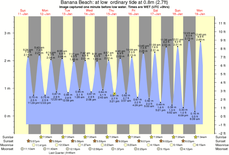 Forecast wind and swell just offshore from Banana Beach around the time the photo was taken