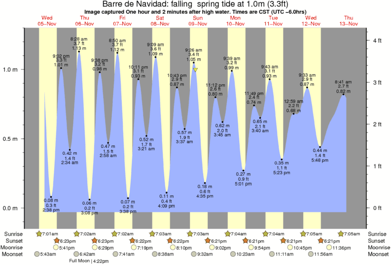 Forecast wind and swell just offshore from Barre de Navidad around the time the photo was taken