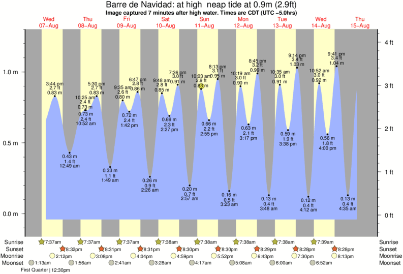 Forecast wind and swell just offshore from Barre de Navidad around the time the photo was taken