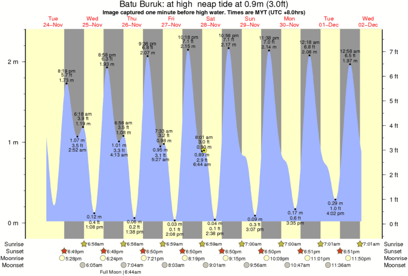 Forecast wind and swell just offshore from Batu Buruk around the time the photo was taken