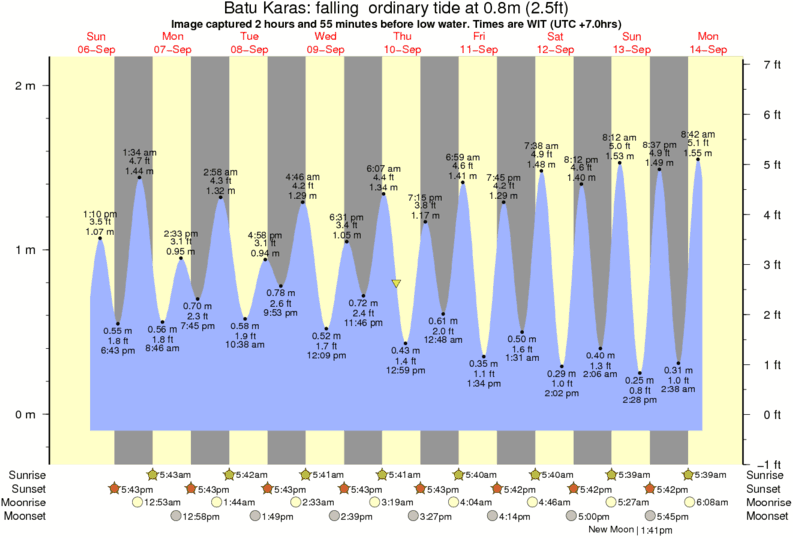 Forecast wind and swell just offshore from Batu Karas around the time the photo was taken