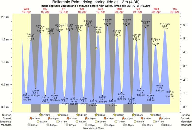 Image captured 2 hours and 4 minutes before high water (rising spring tide). Tide height was 1.3m (4.3 ft). Range 1.83m (6.0 ft). Toggle tide graph