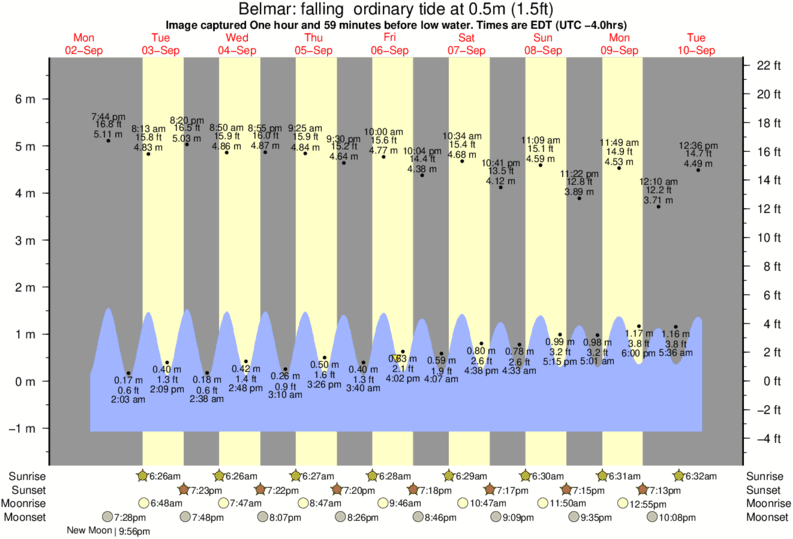 Image captured One hour and 59 minutes before low water (falling ordinary tide). Tide height was 0.5m (1.5 ft). Range 7.23m (23.7 ft). Toggle tide graph