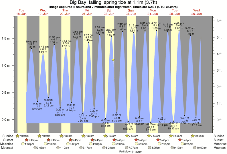 Image captured 2 hours and 7 minutes after high water (falling spring tide). Tide height was 1.1m (3.7 ft). Range 1.80m (5.9 ft). Toggle tide graph