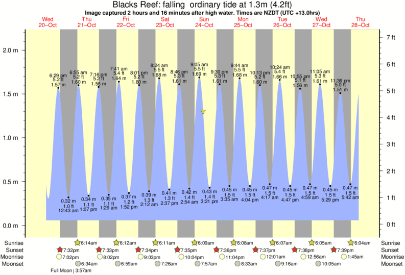 Image captured 2 hours and 16 minutes after high water (falling ordinary tide). Tide height was 1.3m (4.2 ft). Range 1.98m (6.5 ft). Toggle tide graph