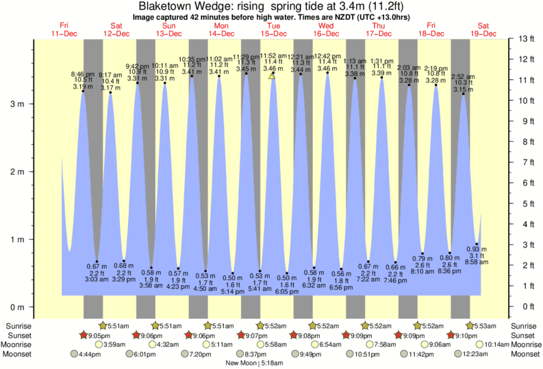 Image captured 42 minutes before high water (rising spring tide). Tide height was 3.4m (11.2 ft). Range 3.44m (11.3 ft). Toggle tide graph