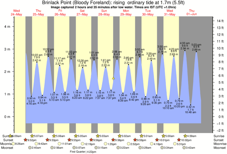 Image captured 2 hours and 35 minutes after low water (rising ordinary tide). Tide height was 1.7m (5.5 ft). Range 4.32m (14.2 ft). Toggle tide graph