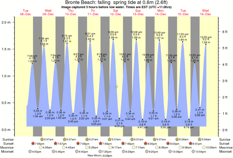 Forecast wind and swell just offshore from Bronte Beach around the time the photo was taken