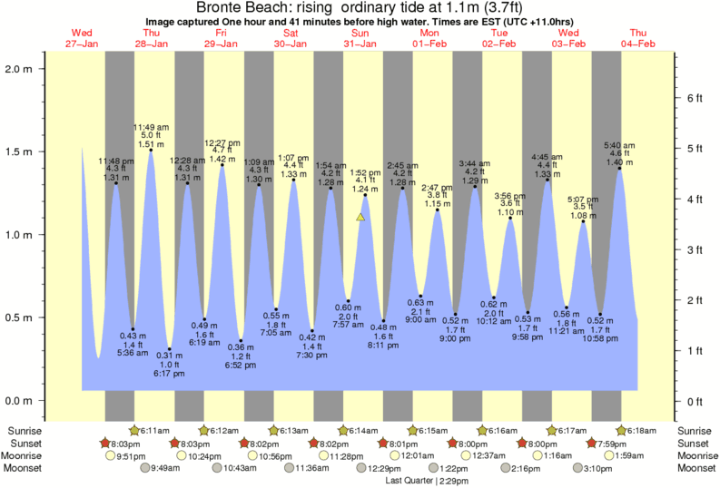Forecast wind and swell just offshore from Bronte Beach around the time the photo was taken