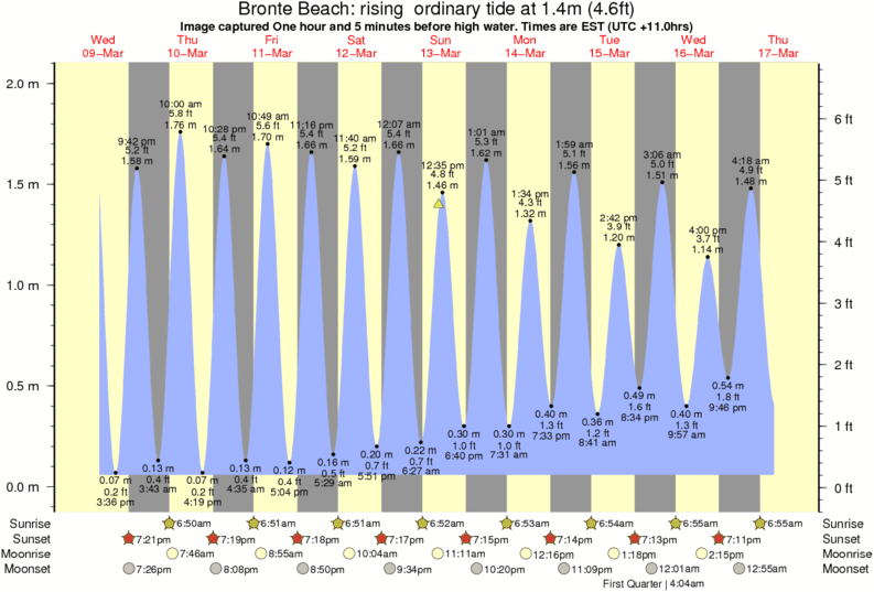 Image captured One hour and 5 minutes before high water (rising ordinary tide). Tide height was 1.4m (4.6 ft). Range 1.86m (6.1 ft). Toggle tide graph