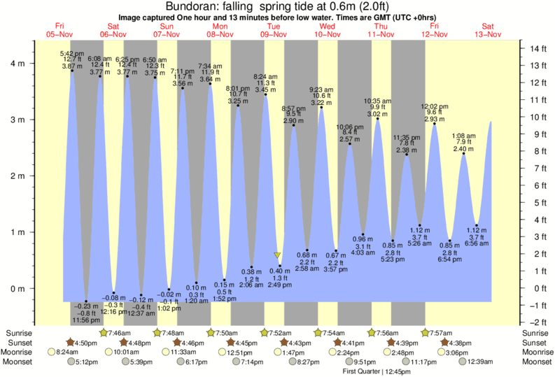 Image captured One hour and 13 minutes before low water (falling spring tide). Tide height was 0.6m (2.0 ft). Range 4.23m (13.9 ft). Toggle tide graph