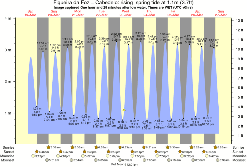 Image captured One hour and 28 minutes after low water (rising spring tide). Tide height was 1.1m (3.7 ft). Range 3.34m (11.0 ft). Toggle tide graph