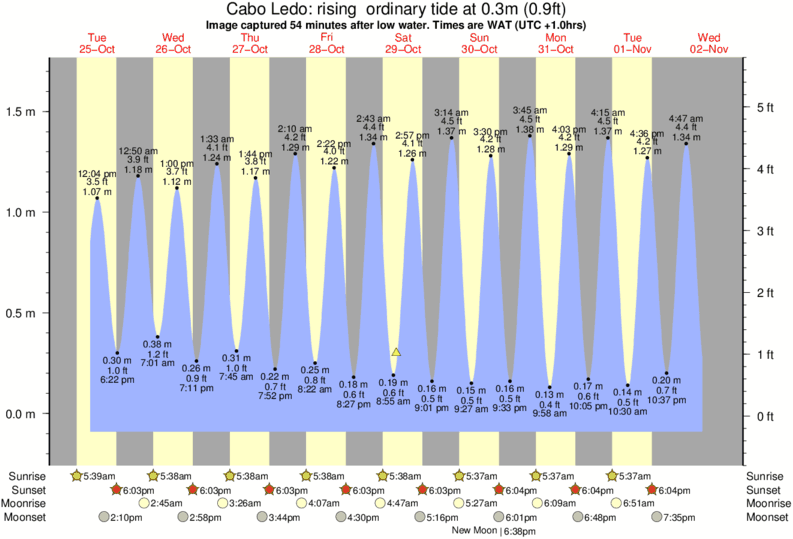 Forecast wind and swell just offshore from Cabo Ledo around the time the photo was taken