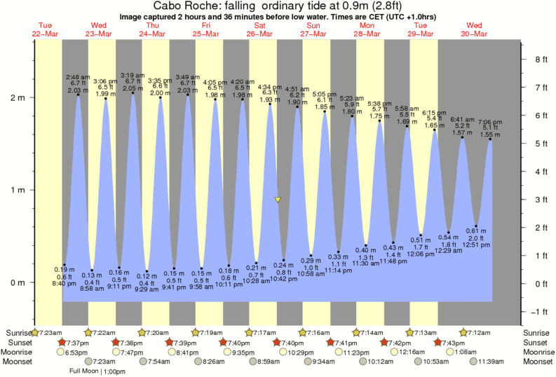 Forecast wind and swell just offshore from Cabo Roche around the time the photo was taken