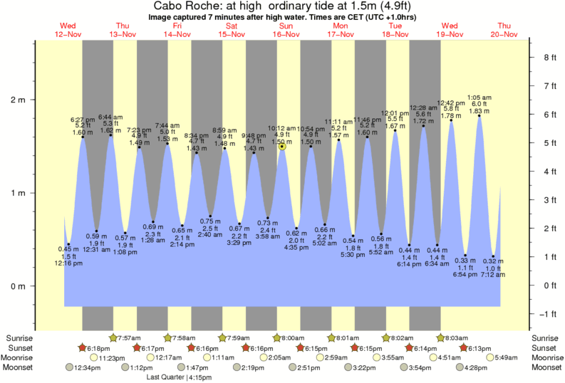 Forecast wind and swell just offshore from Cabo Roche around the time the photo was taken