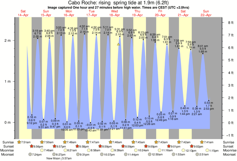 Forecast wind and swell just offshore from Cabo Roche around the time the photo was taken