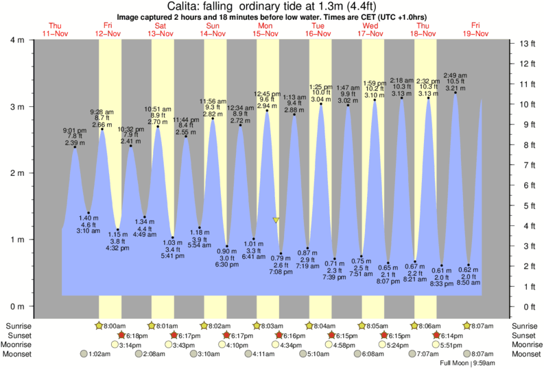 Image captured 2 hours and 18 minutes before low water (falling ordinary tide). Tide height was 1.3m (4.4 ft). Range 3.50m (11.5 ft). Toggle tide graph