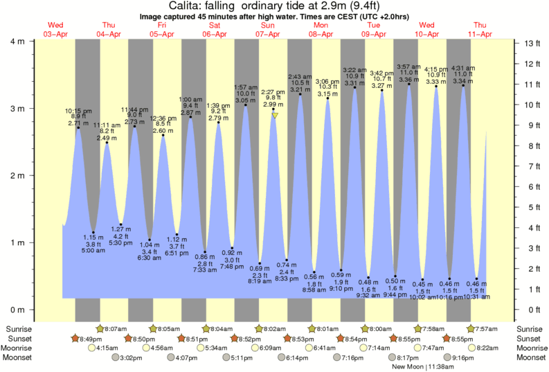 Image captured 45 minutes after high water (falling ordinary tide). Tide height was 2.9m (9.4 ft). Range 3.51m (11.5 ft). Toggle tide graph