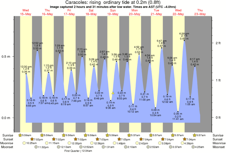Image captured 2 hours and 31 minutes after low water (rising ordinary tide). Tide height was 0.2m (0.8 ft). Range 0.79m (2.6 ft). Toggle tide graph