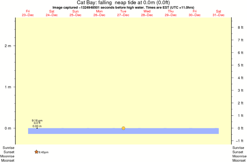 Image captured -1324948501 seconds before high water (falling neap tide). Tide height was 0.0m (0.0 ft). Range 2.57m (8.4 ft). Toggle tide graph