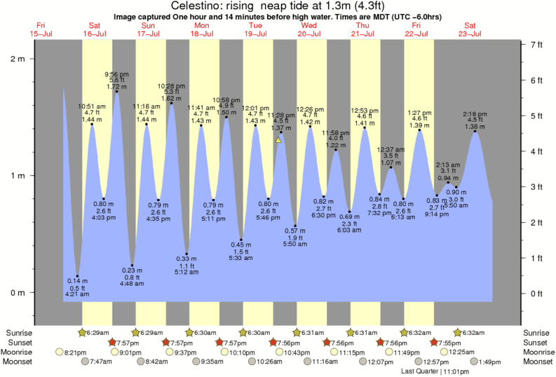 Image captured One hour and 14 minutes before high water (rising neap tide). Tide height was 1.3m (4.3 ft). Range 2.04m (6.7 ft). Toggle tide graph