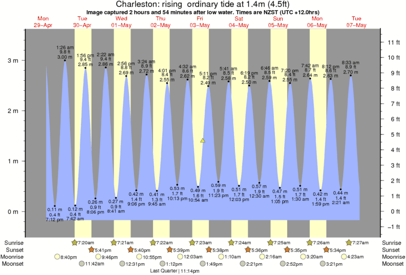 Image captured 2 hours and 54 minutes after low water (rising ordinary tide). Tide height was 1.4m (4.5 ft). Range 3.45m (11.3 ft). Toggle tide graph