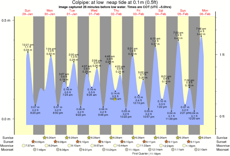 Image captured 26 minutes before low water (at low neap tide). Tide height was 0.1m (0.5 ft). Range 0.50m (1.6 ft). Toggle tide graph