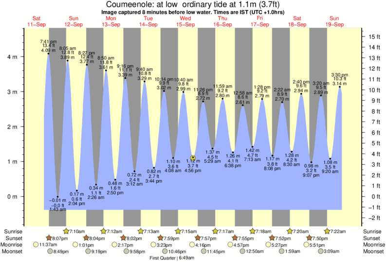 Image captured 8 minutes before low water (at low ordinary tide). Tide height was 1.1m (3.7 ft). Range 4.73m (15.5 ft). Toggle tide graph