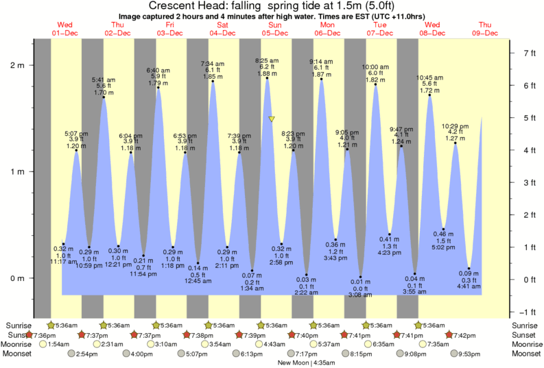 Image captured 2 hours and 4 minutes after high water (falling spring tide). Tide height was 1.5m (5.0 ft). Range 2.19m (7.2 ft). Toggle tide graph