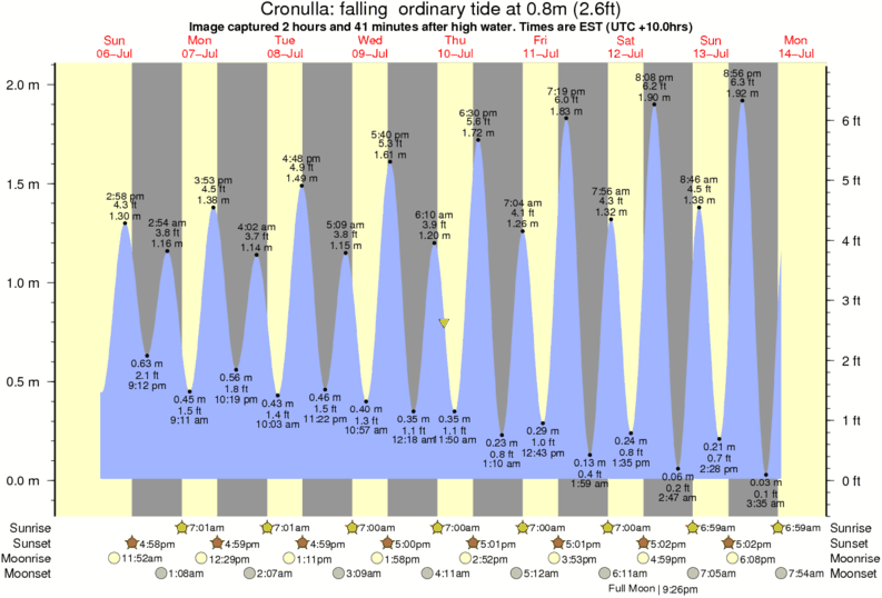 Image captured 2 hours and 41 minutes after high water (falling ordinary tide). Tide height was 0.8m (2.6 ft). Range 1.91m (6.3 ft). Toggle tide graph