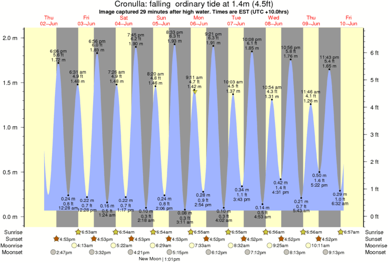 Image captured 29 minutes after high water (falling ordinary tide). Tide height was 1.4m (4.5 ft). Range 1.86m (6.1 ft). Toggle tide graph