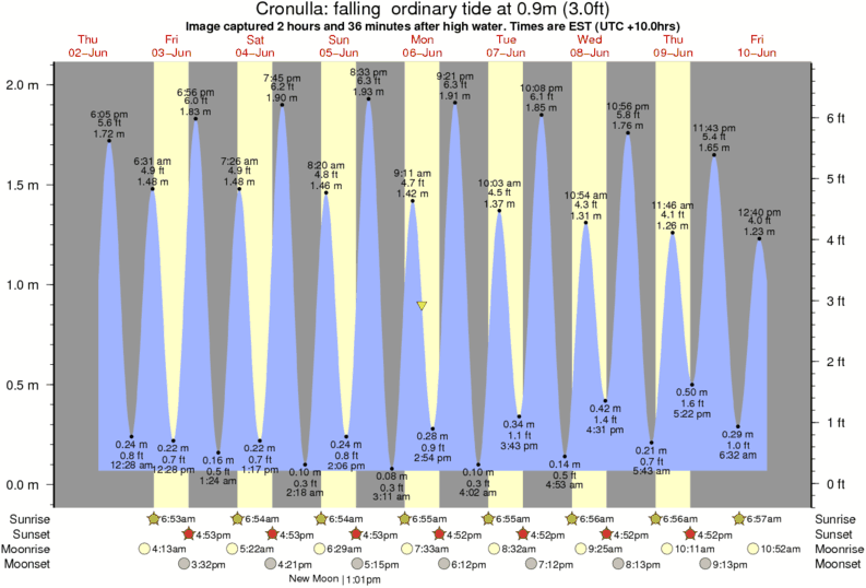 Image captured 2 hours and 36 minutes after high water (falling ordinary tide). Tide height was 0.9m (3.0 ft). Range 1.86m (6.1 ft). Toggle tide graph