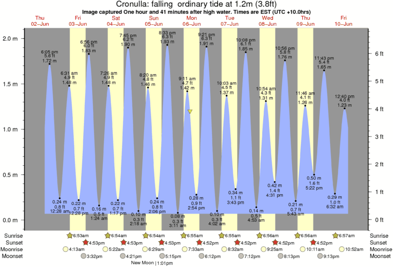 Image captured One hour and 41 minutes after high water (falling ordinary tide). Tide height was 1.2m (3.8 ft). Range 1.86m (6.1 ft). Toggle tide graph