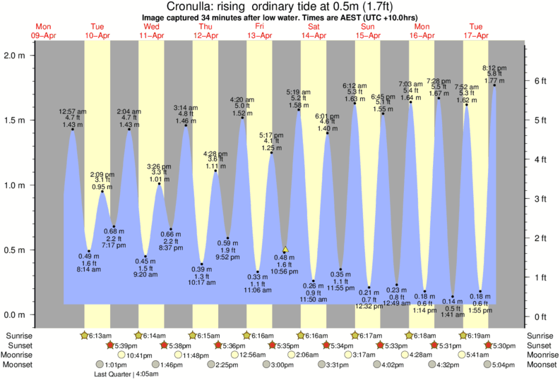 Forecast wind and swell just offshore from Cronulla around the time the photo was taken