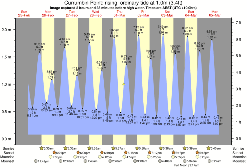 Image captured 2 hours and 33 minutes before high water (rising ordinary tide). Tide height was 1.0m (3.4 ft). Range 1.94m (6.4 ft). Toggle tide graph