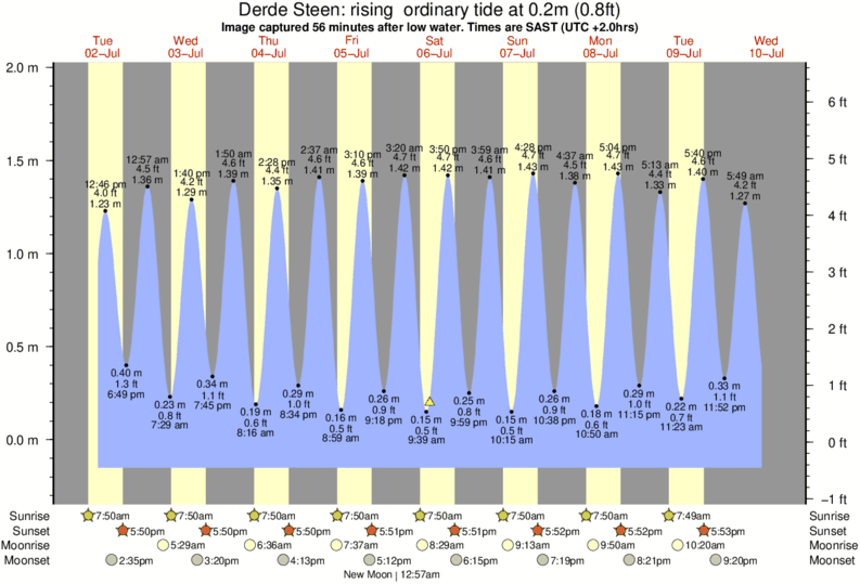 Image captured 56 minutes after low water (rising ordinary tide). Tide height was 0.2m (0.8 ft). Range 1.98m (6.5 ft). Toggle tide graph