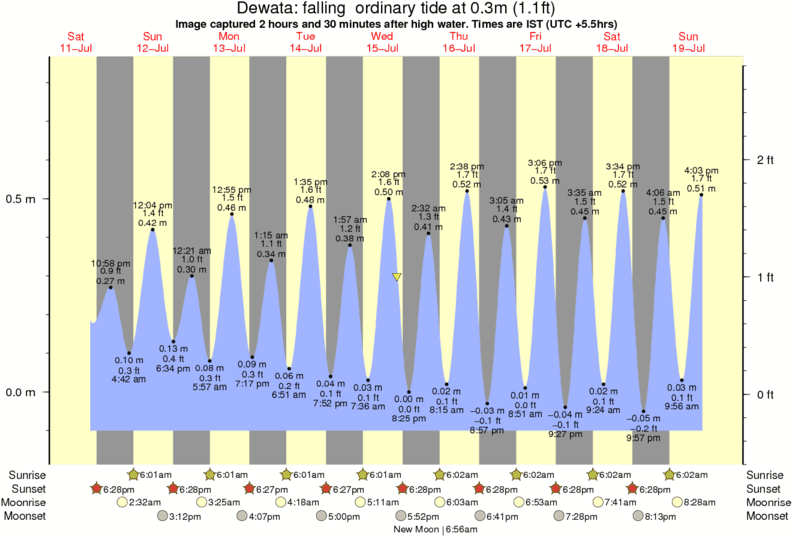 Image captured 2 hours and 30 minutes after high water (falling ordinary tide). Tide height was 0.3m (1.1 ft). Range 0.88m (2.9 ft). Toggle tide graph