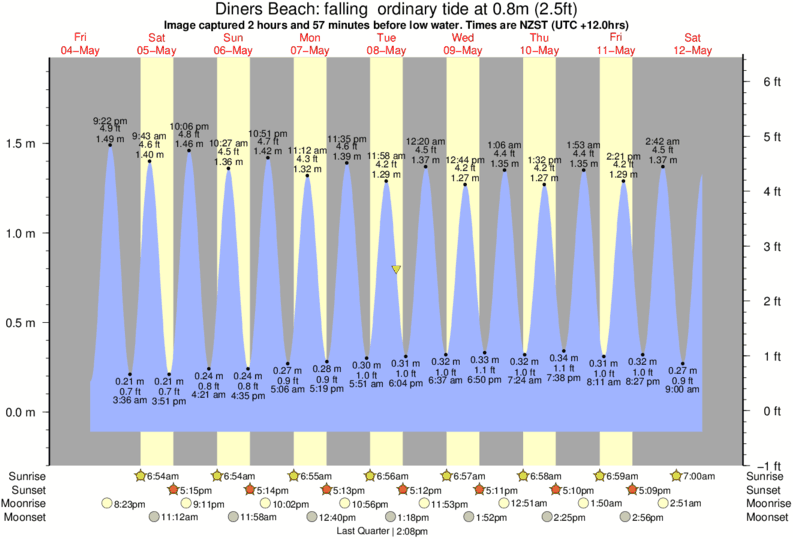 Image captured 2 hours and 57 minutes before low water (falling ordinary tide). Tide height was 0.8m (2.5 ft). Range 1.89m (6.2 ft). Toggle tide graph