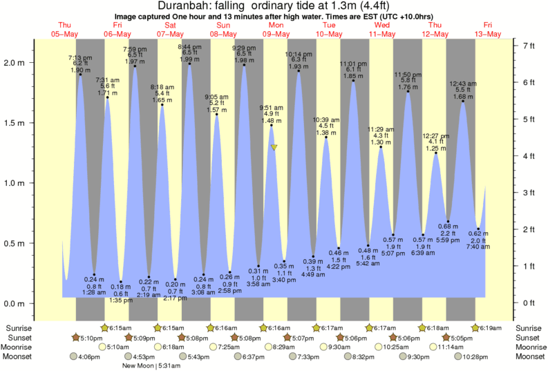Image captured One hour and 13 minutes after high water (falling ordinary tide). Tide height was 1.3m (4.4 ft). Range 1.95m (6.4 ft). Toggle tide graph