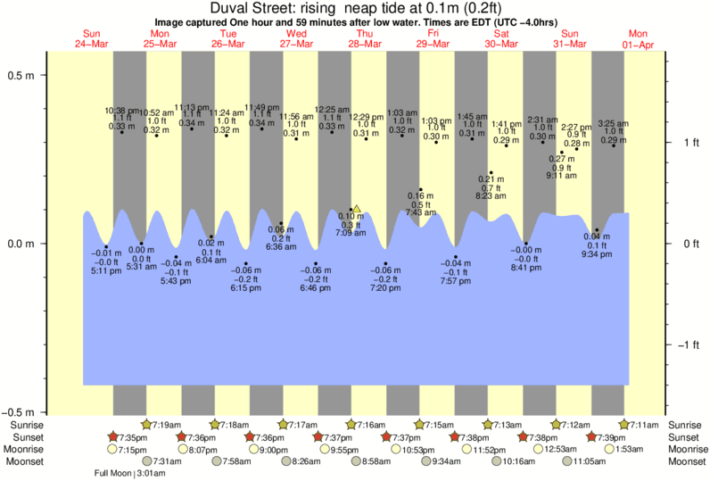 Forecast wind and swell just offshore from Duval Street around the time the photo was taken