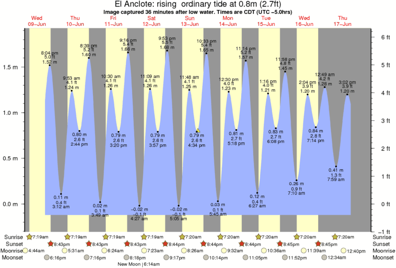 Forecast wind and swell just offshore from El Anclote around the time the photo was taken