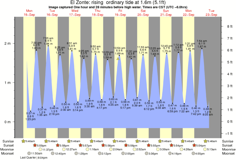 Forecast wind and swell just offshore from El Zonte around the time the photo was taken