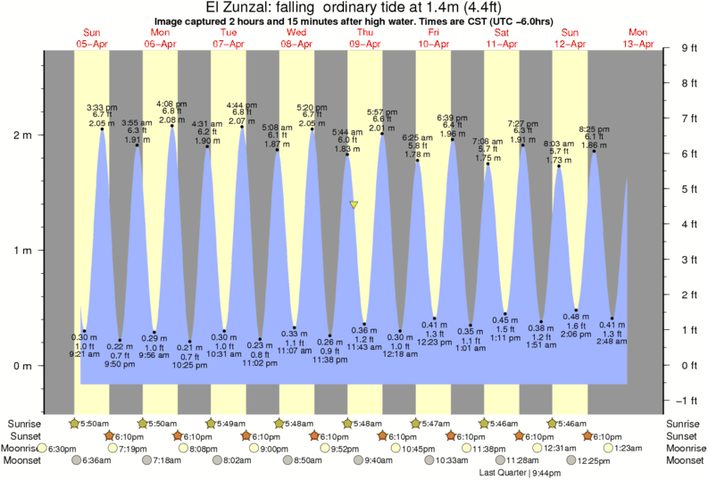 Image captured 2 hours and 15 minutes after high water (falling ordinary tide). Tide height was 1.4m (4.4 ft). Range 2.63m (8.6 ft). Toggle tide graph